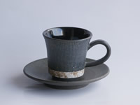 ・靖之作 象嵌カップ&ソーサー 老眼に負けずがんばって一本ずつ細い線を入れています。この作業、夕方になってくるともう無理らしい。