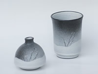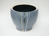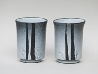 ・寛子作 湯呑 冬の木立 花器にも使っている木のモチーフ。白い釉薬を効果的に使うことで冬の雰囲気が出ました。