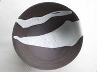 ・寛子作 色絵鉢 黒の素地に釉薬で景色を出してシンプルな上絵。この作風が現在にもつながるものとなっています。