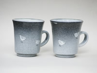 ・寛子作 鳥のマグカップ 寛子さんの定番の鳥のデザインですが、ちょっとずつ趣が変わっています。今の鳥はこれ。