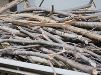 ・冬の準備 薪ストーブの焚き付けに欠かせない、たきぎ。家の周りに落ちている枝を拾っています。これこそ循環社会。