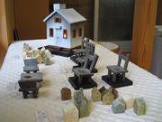 ・カントリーグラス2 なんでも自作の秋之野窯はバラ ストにつづいてカントリーグラスも 自作。 台所用スポンジとオガクズとアク リル絵の具で作れる。 モーリンさんごめんなさい。 |